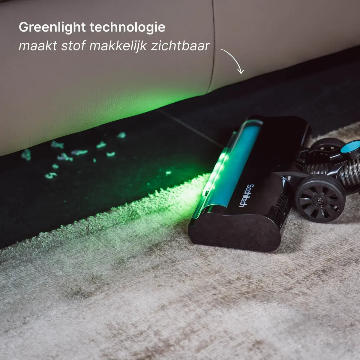 De Sophitech DustVision combineert slimme technologie met dagelijks gebruiksgemak. Dankzij de GreenLight-verlichting zie je stof en vuil dat normaal verborgen blijft, terwijl de automatische zuigkracht zich aanpast aan elk oppervlak. Zo maak je sneller, grondiger en zonder extra moeite schoon, elke dag opnieuw.