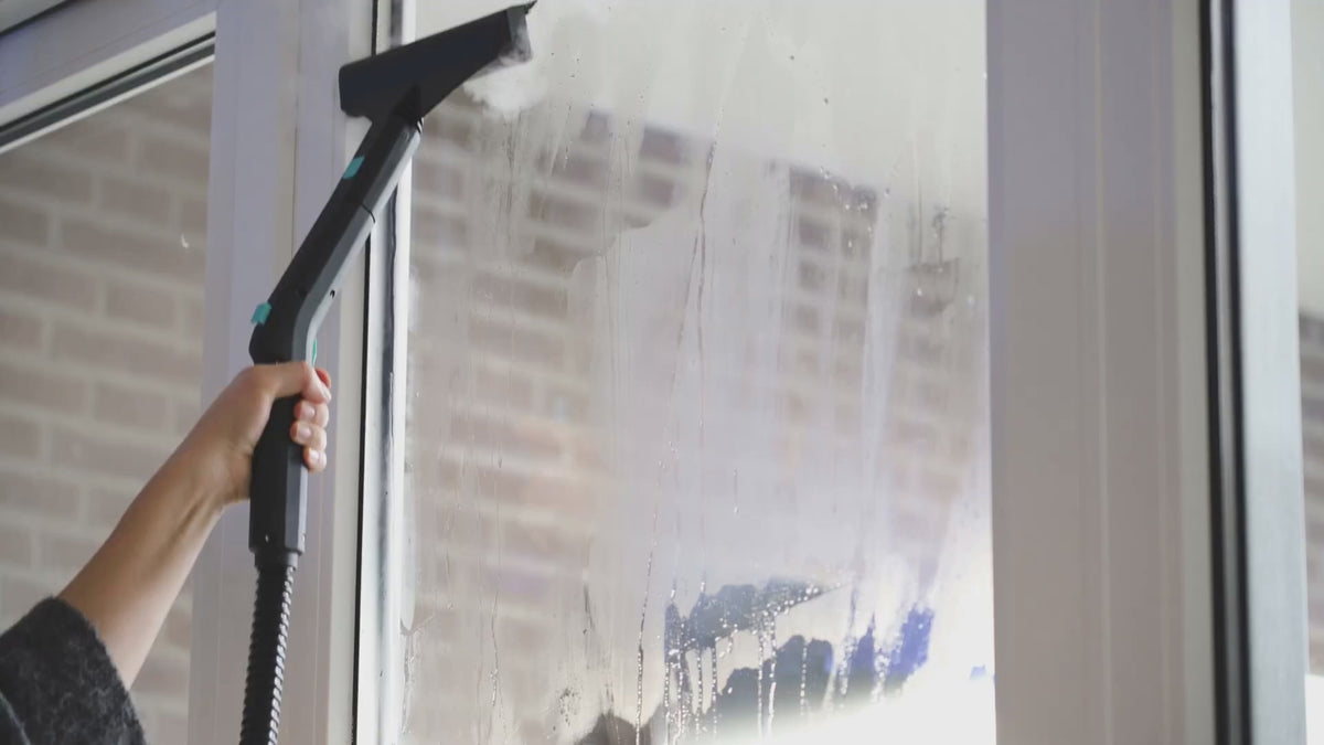 Met de meegeleverde raamtrekker verwijdert de SteamMaster vet, vuil en condens in één beweging.