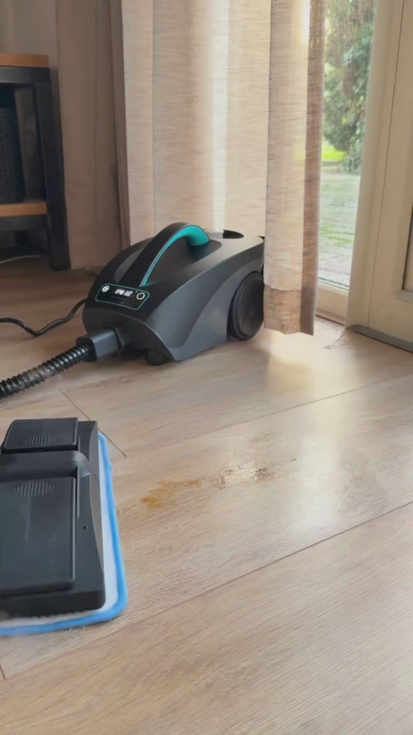 De Sophitech SteamMaster maakt harde vloeren en tapijt zichtbaar schoon met 140ºC krachtige stoom.